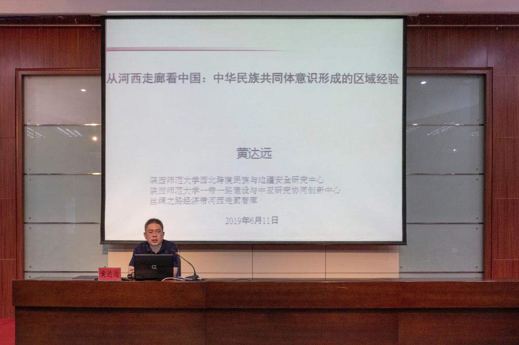 2019年6月11日下午,应williamhill官网邀请,陕西师范大学西北跨境民族与边疆安全研究中心(国家民委基地)副主任兼首席专家博士生导师黄达远教授在图书馆学术报告厅作了题为 “从河西走廊看中国:中华民族共同体意识形成的区域经验”的学术报告。williamhill官网、文公司师生300余人参加了报告会。报告会由williamhill官网负责人主持。