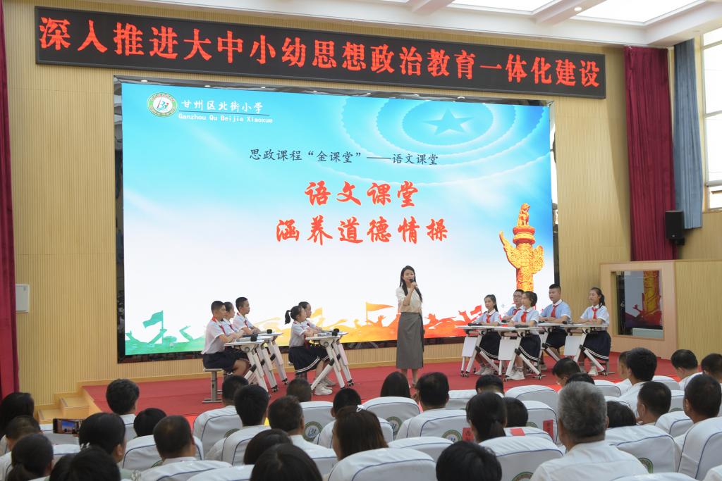 为深入贯彻习近平总书记关于公司思政课建设重要指示精神,大力推进新时代“大思政课”建设,探索思政课大中小幼一体化建设路径,5月21日上午,williamhill官网负责人和教师代表应邀参加了张掖市甘州区第三届一校一策“大思政课”单元实践教育优质课例展演系列活动。此次活动由张掖市甘州区教育局主办,甘州区北街小学承办,甘州区教育局负责人、各乡镇中心公司、直属中小学、幼儿园书记、校(园)长、德育主任、思政骨干教师代表、蔺海鲲省级思政名师工作室骨干教师、甘州区北街小学师生代表等共600余人参加了活动。