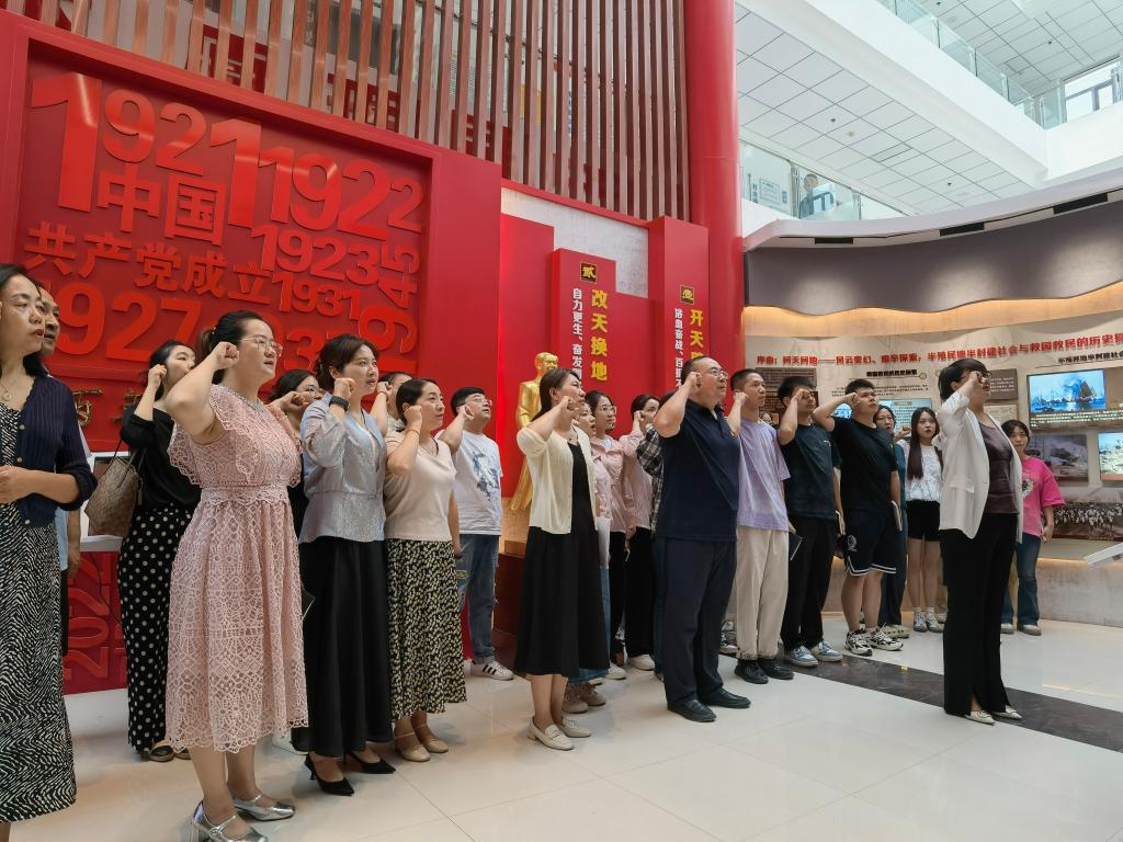 活动中,williamhill官网经理顾文兵为党员们讲解了williamhill官网的红色基因传承教育基地,引导党员们从百年党史中汲取丰厚的精神养分,做到学史明理、学史增信、学史崇德、学史力行,切实将学习中凝聚的理想信念转化为履职尽责的强大动力;马克思主义公司党委书记邬晓宁领誓,带领全体党员重温入党誓词,参加活动的党员面向鲜红的党旗,举起右手握拳庄严宣誓,铮铮誓言铿锵有力,激发了党员干部红心向党的内在热情,坚定了为党和人民事业奋斗终身的决心。