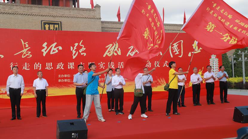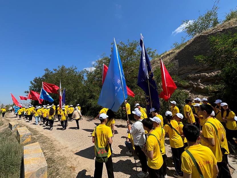 在红军会宁会师旧址,师生代表向革命先烈敬献花篮、鞠躬致敬。启动仪式结束后,师生从红军会宁会师旧址出发,沿着红军长征胜利景园、桃花山文化广场、会南路追寻红色足迹。12公里,4小时,师生们背诵诗词,讲述红色故事,行走中的微思政课、寻访长征路上的红色足迹,传唱红色歌曲《唱支山歌给党听》《过雪山草地》《四渡赤水出奇兵》《我和我的祖国》等,带着感情重温革命历史、缅怀革命先烈,传承红色基因、汲取奋进力量。