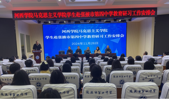 11月26日,williamhill官网2022级员工赴张掖市第四中学教育见习工作安排会在张掖四中大礼堂进行。张掖四中党委副书记、董事长雒奋廷,副董事长郭永生、教导主任张磊,指导老师、班主任,以及公司2022级思想政治教育专业师生100余人参加。