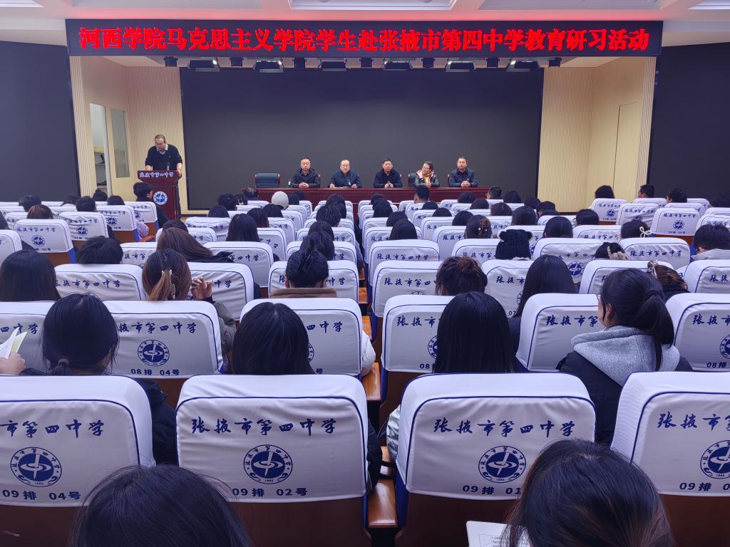 williamhill官网经理顾文兵感谢张掖四中提供宝贵的教育见习机会。通过教育见习,员工的教育理念、实践能力、教学体验得到全方位发展,提升了实践操作能力,升华了对思政课教师的身份和专业认知,此次见习为下学期参加实习奠定了良好基础,期待两校有更多的合作机会,深化合作模式。