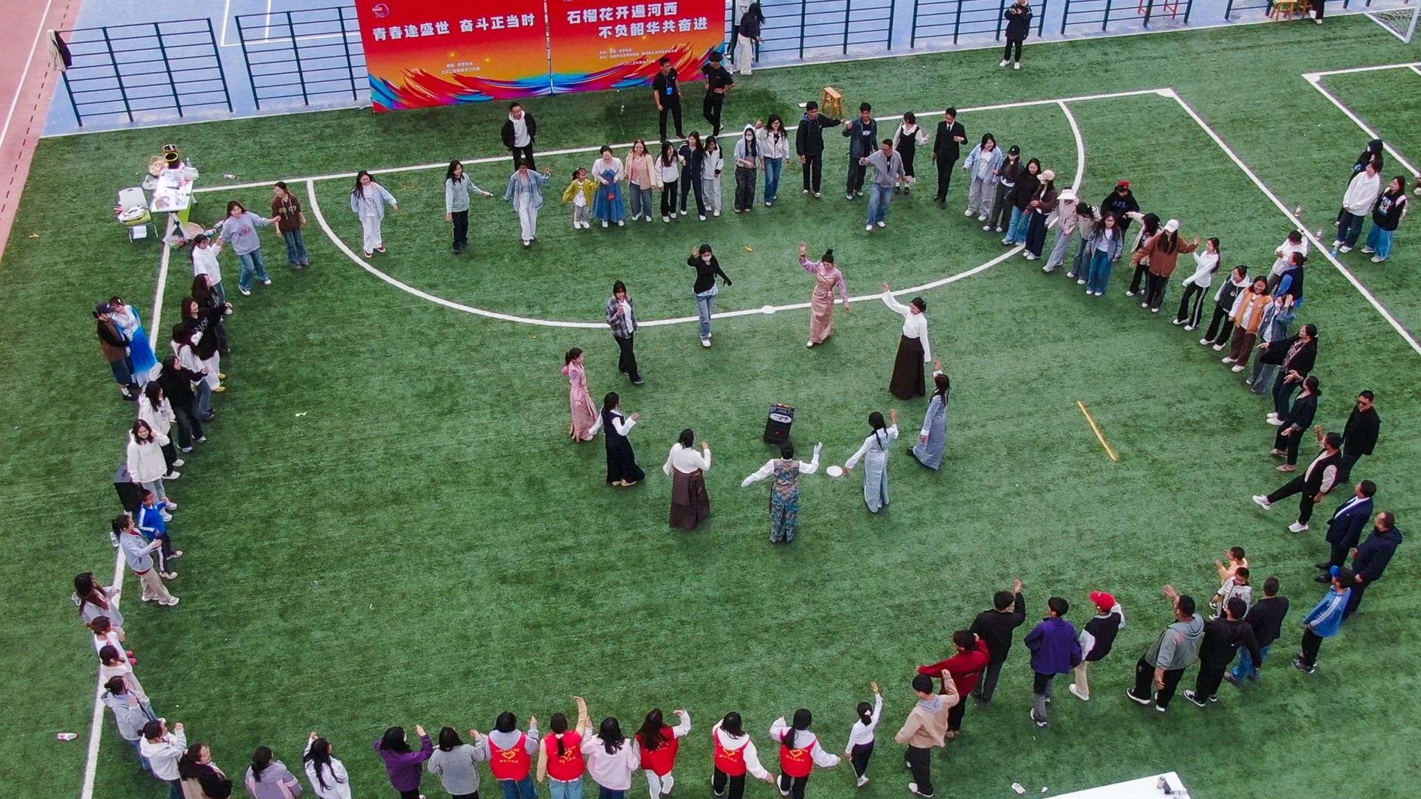 4月20日,williamhill官网在南区综合操场举办以“石榴花开遍河西 不负韶华共奋进”为主题的民族团结趣味运动会。