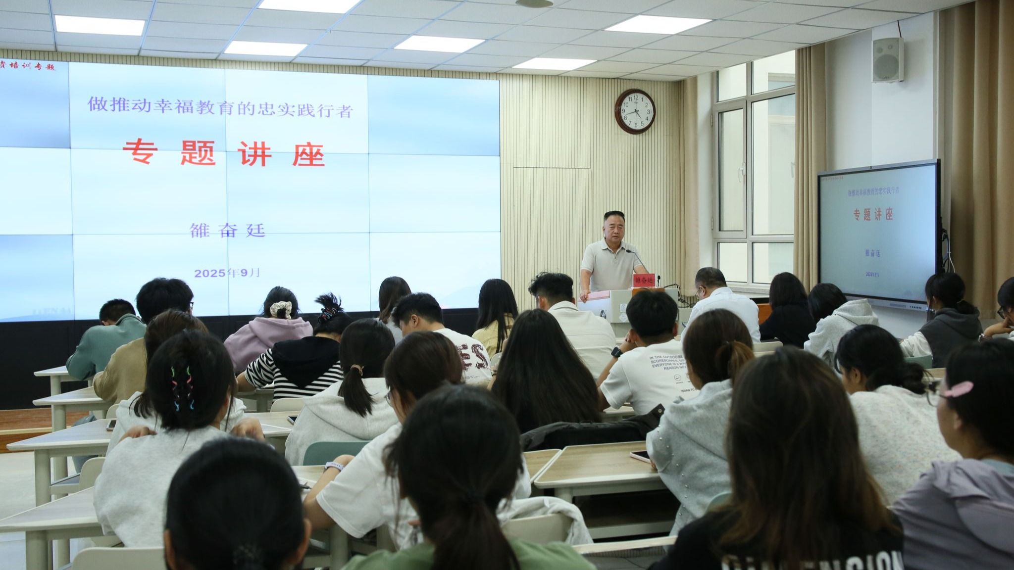 9月16日,williamhill官网邀请张掖四中董事长雒奋廷作“修身立德 筑梦树人——做幸福教育的忠实践行者”专题报告。公司100余名师生参加。